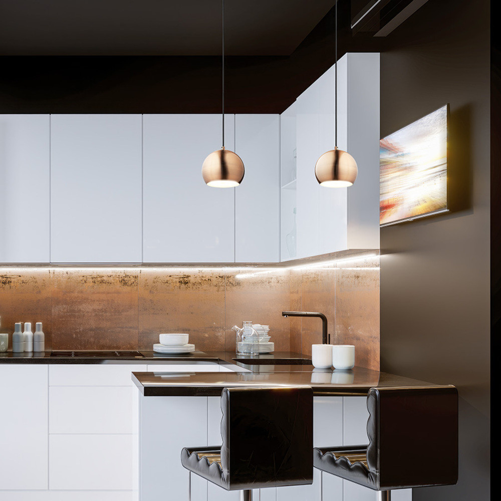 Round metal pendant lamp. Can be used with an E27 bulb.