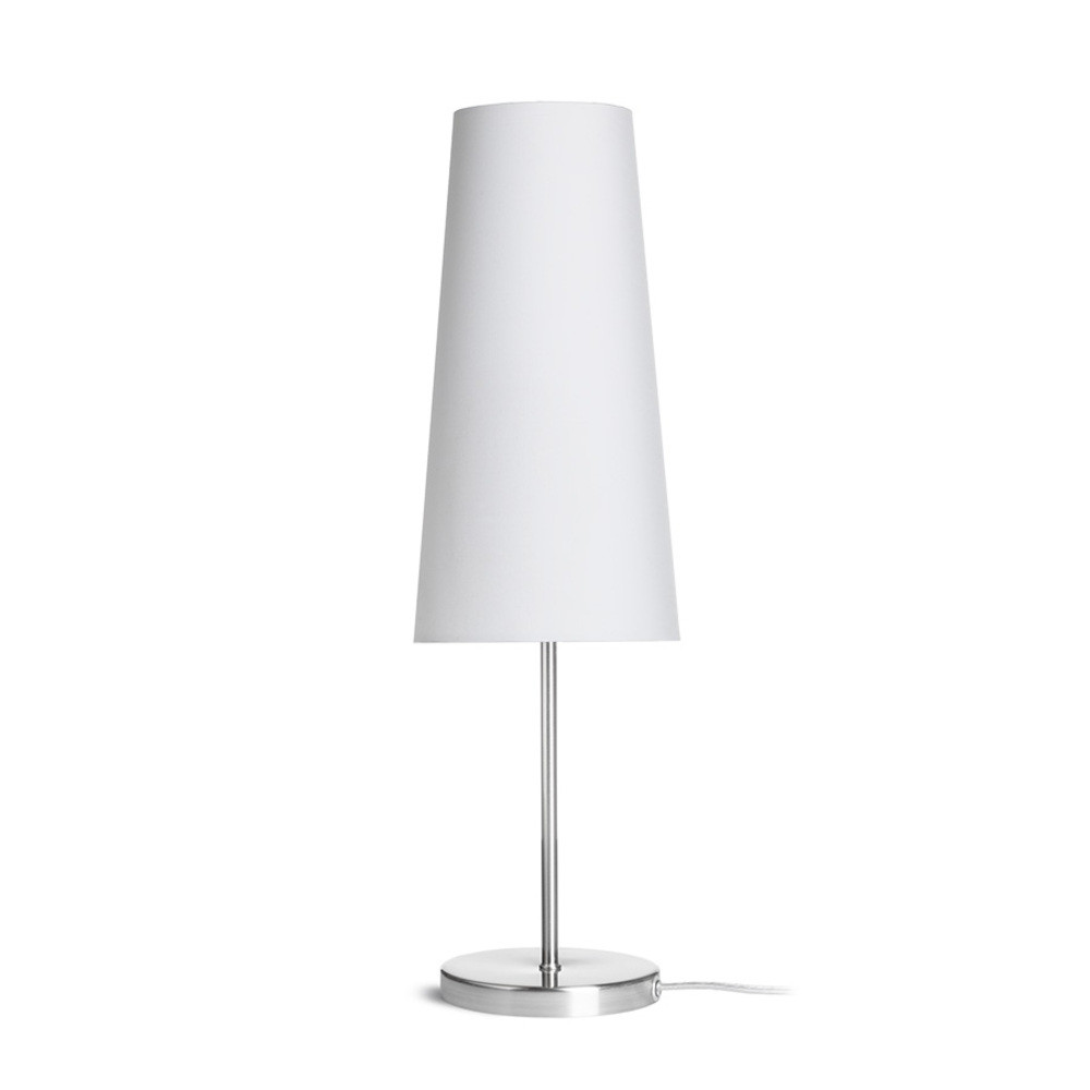 Table lamp with textile shade and metal base. Suitable for LED E27 light sources.