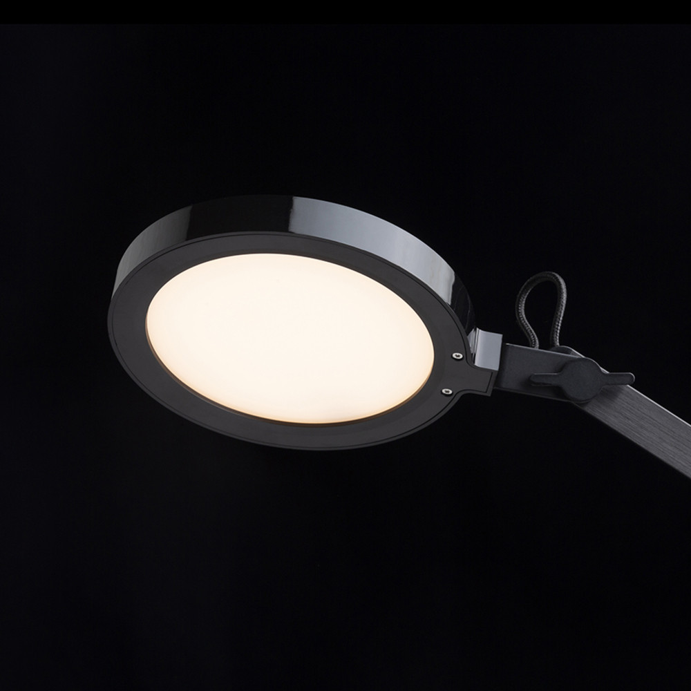 LED table lamp with two arms. The intensity control is located on the top of the lamp. Three-stage brightness control. The lamp can be mounted on a tabletop or shelf by purchasing the EMA bracket (R14290, R14291) separately.