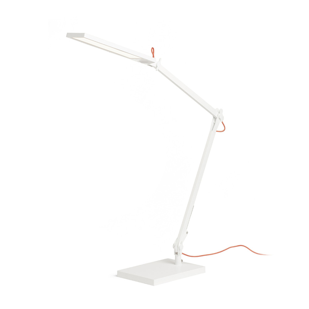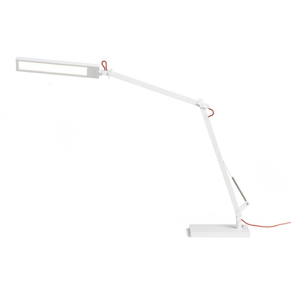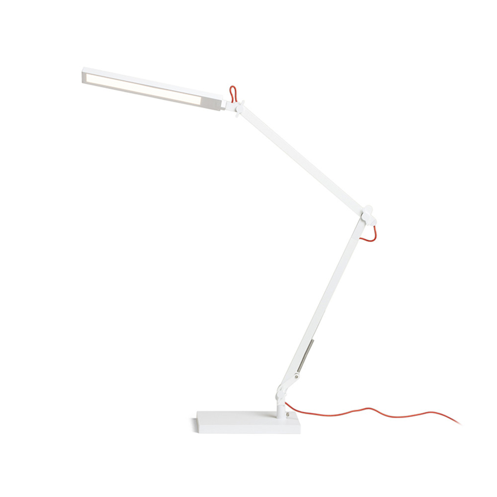 LED table lamp with two arms. Brightness and color control is located on the top of the reflector. Three-stage brightness control. The lamp can be mounted on a tabletop or shelf by purchasing the EMA (R14290, R14291) bracket separately.