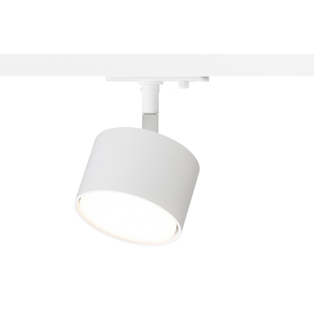 Aluminum, tiltable lamp with adapter for single-circuit track. The lamp is suitable for energy-saving LED lamps with GX53 socket.