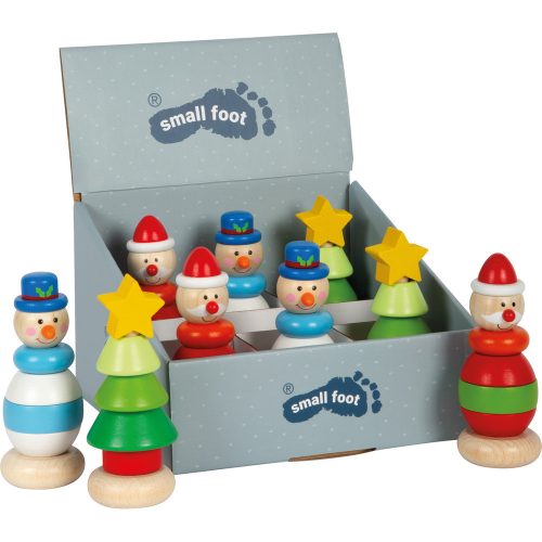 Set of 9. A fun stacking game in a Christmas look! Whether it's Father Christmas, a Christmas tree or a snowman, the various wooden insert elements have to be stacked in the right order. A compact motor activity game that's ideal when on-the-go and for the advent calendar!