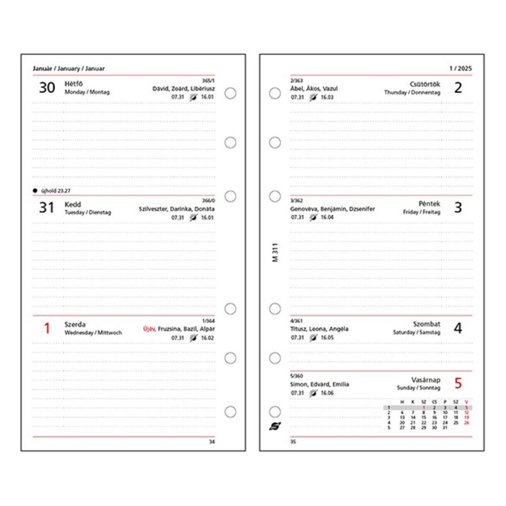 Ring calendar insert SATURNUS M311/F weekly white flat 2025.