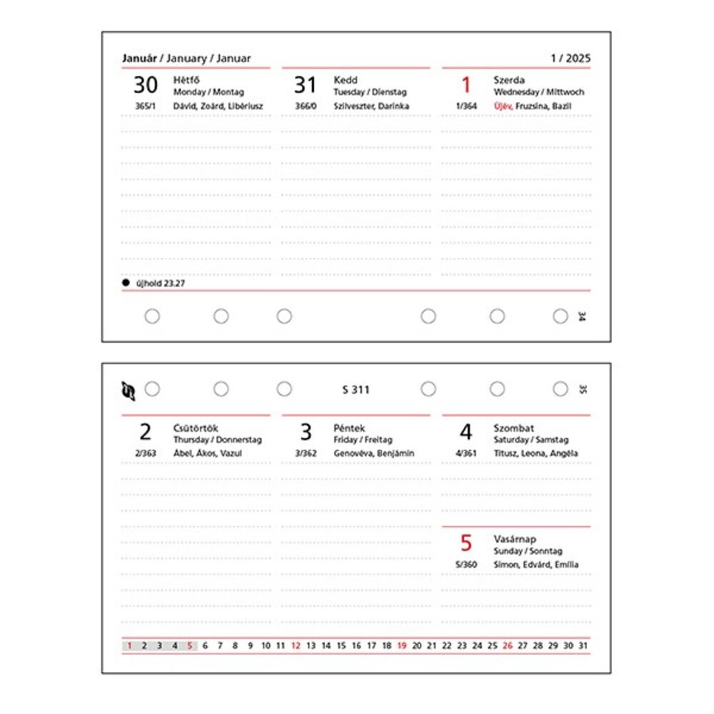 Ring calendar insert SATURNUS S311/F weekly white flat 2025.