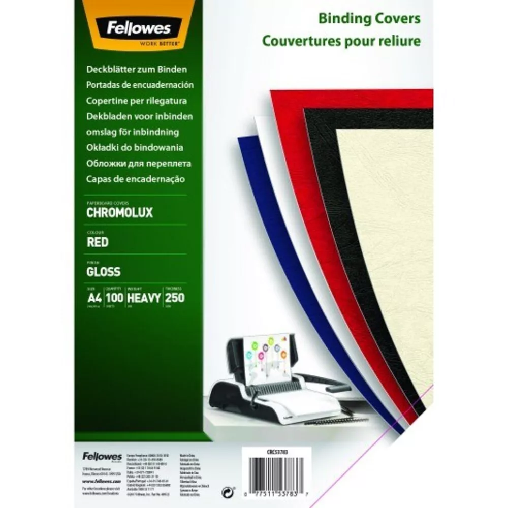 Back sheet FELLOWES Chromolux A/4 250 g glossy red 100/pc