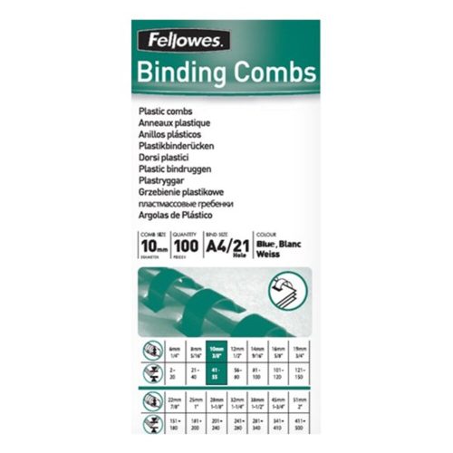 Spiral plastic FELLOWES 10mm blue plastic spiral 41-55 pages 100 pieces
