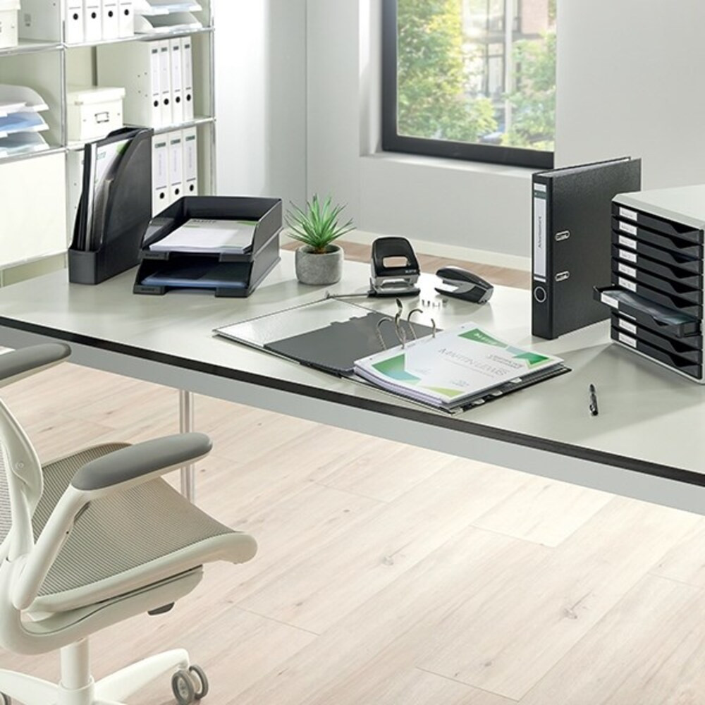 In high-capacity document tray. As part of the Leitz Plus modular document tray system, it can be combined as desired with other Leitz Plus document trays in a horizontal or staggered arrangement. Its design and colors match the other members of the Leitz Plus product range. A particularly strong and durable font. Create your own document storage system! Make your own labels at www.easyprint.com