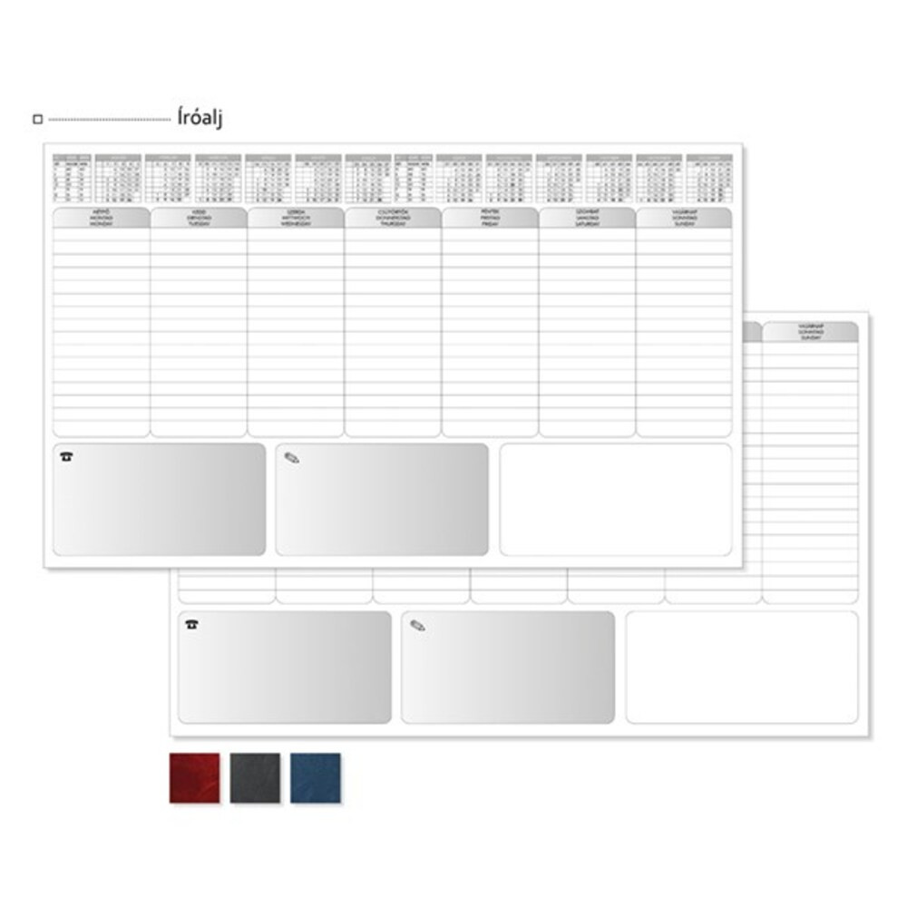 One-color printing on white paper, with a raised block in the head, with a folded-up flap of artificial leather, which can also be used as an advertising carrier.