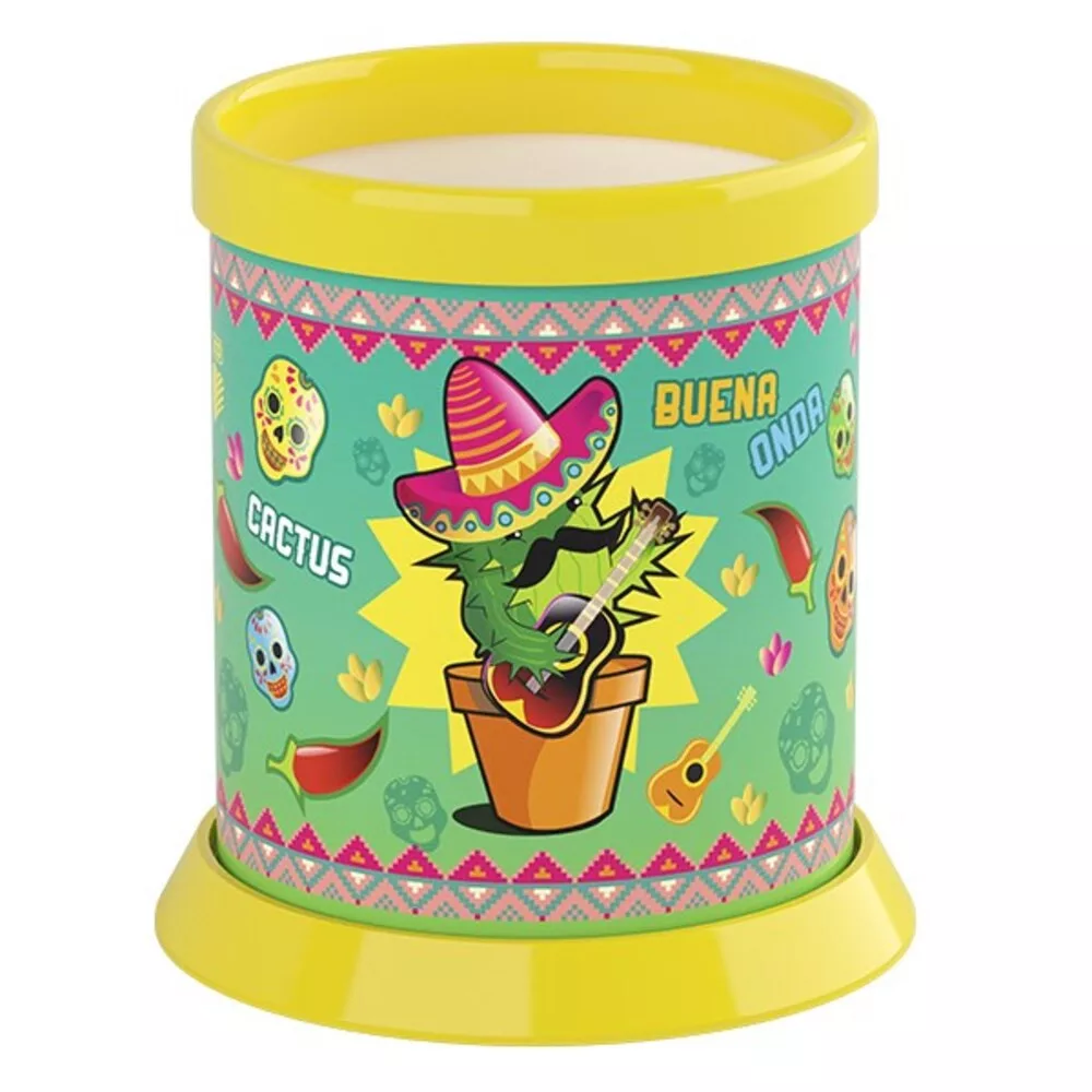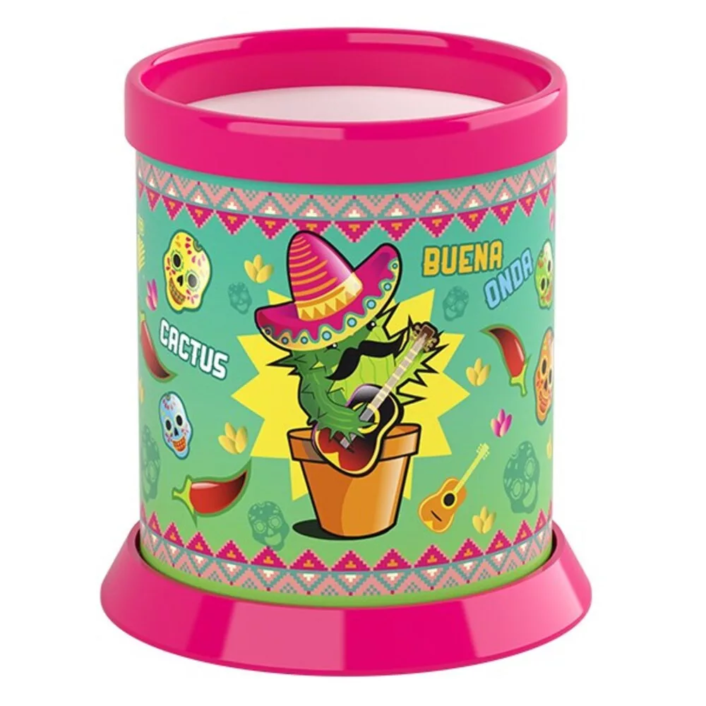 Plastic stationery cup in 4 colors, in the shape of a bin. Size: 6 x 8 x 11 cm