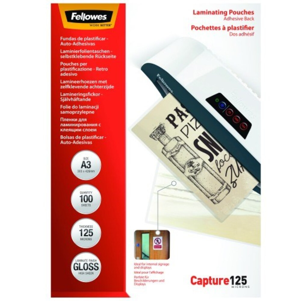 Laminating film FELLOWES A/3 125 micron glossy self-adhesive 100/pack