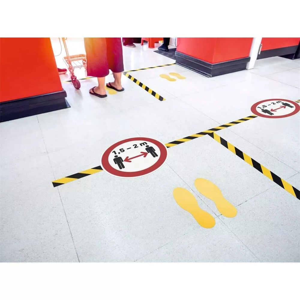 The DURABLE self-adhesive footprint shapes, measuring 90x240 mm, offer a flexible solution. The bright yellow color and unique design make them easily noticeable in any environment, thereby assisting workers in navigation. The product package includes 2 self-adhesive markers that can be easily applied and removed without leaving marks on surfaces. These tools promote workplace safety, efficiency, and good visibility.