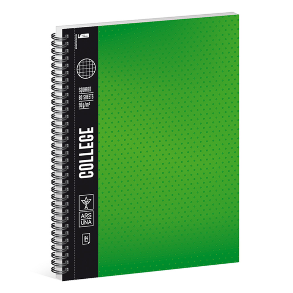 Spiral notebook checkered ARS UNA College A/4 80 pages green