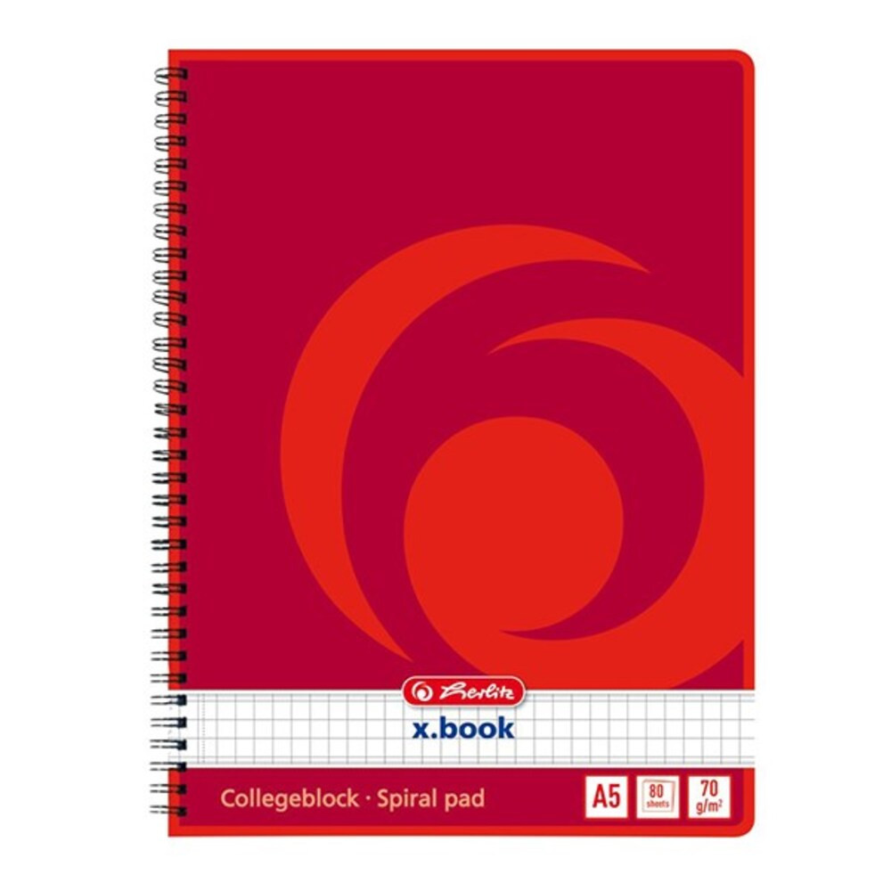 Spiral notebook checkered HERLITZ A/5 80 sheets perforated punched
