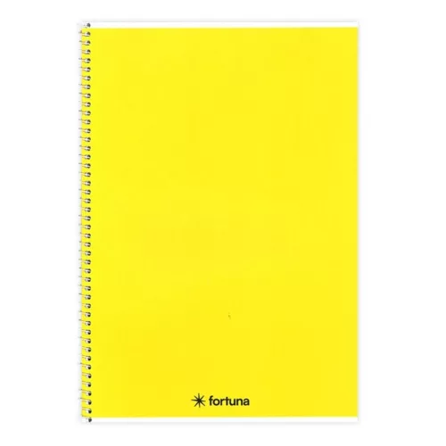 The FORTUNA Monocolor spiral notebook is available in A5 size and features 70 lined pages, with a bright yellow color that is eye-catching for note-taking. It includes all the advantages of products in the sewn and spiral notebook categories, such as durability and ease of use. The combined use of these collection and storage tools contributes to organization and archiving, allowing for clearer management of documents.