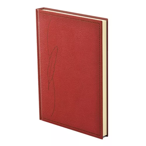 Calendar made with embossed, leather-effect, heat-dyeing synthetic leather coating, decorative frame and elegant year. Chamois (cream-colored) block calendar with colored noseband, marker tape and corner perforation. It can be emblazoned with blind printing and laser engraving