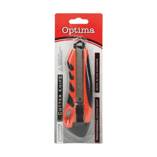 Universal cutting knife OPTIMA plastic body rubber grip part with metal rail 18mm black red