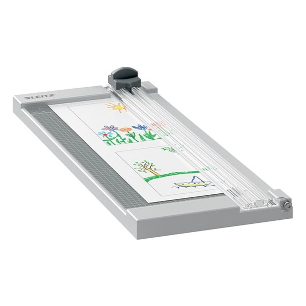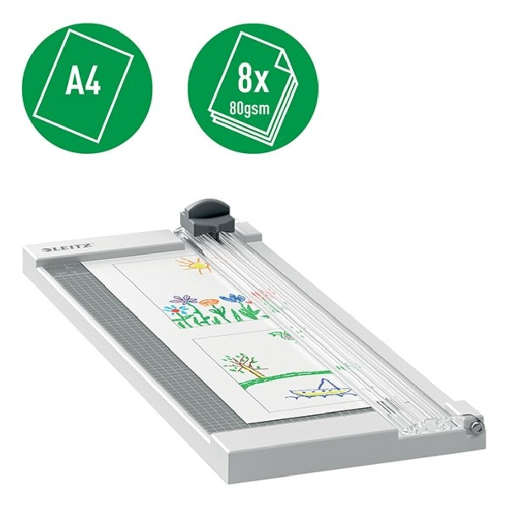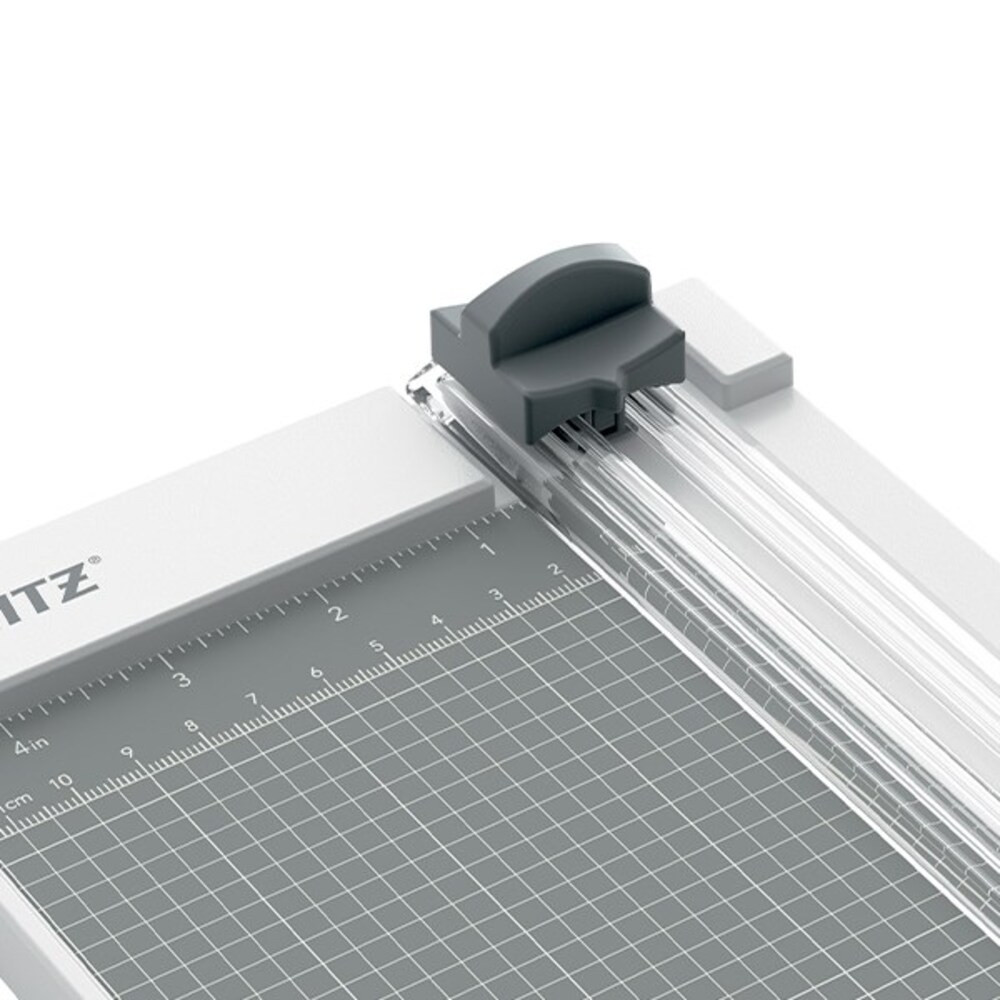 The Leitz Precision Home Office A4 paper cutter is perfect for home and office use, for cutting paper, labels, transparencies, photos, laminates and cards. This strong and light home paper cutter easily, quickly and precisely cuts up to 10 sheets of A4 paper (80 g/m2) at the same time. With unique EdgeGlow technology that illuminates the cutting area for better visibility and maximum precision. The transparent, manual paper clamp securely holds the paper, while the ergonomic handle ensures comfortable and easy cutting. Smooth, laminated work surface, metric grid lines, angle markings and rulers for quick and easy sheet alignment. The protective plate provides full protection while cutting, while the cutter safety lock keeps the cutter closed when not in use. This high-quality lever paper cutter with a stainless steel blade, a solid work surface and a 3-year warranty ensures accurate cutting for many years.