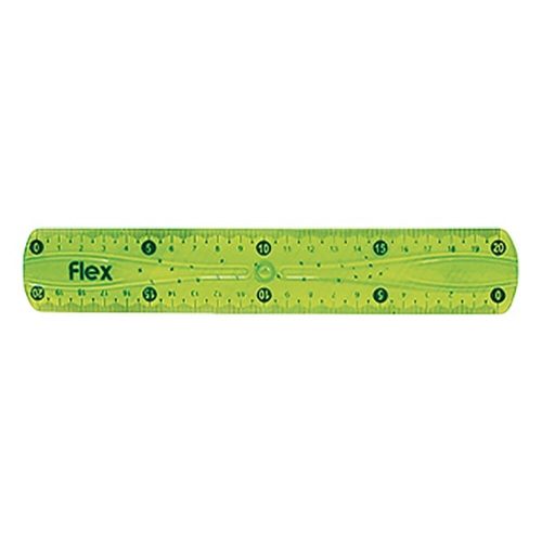 A transparent ruler made of durable plastic that does not deform. Blue color, with a standard number scale, slanted side for comfortable drawing.