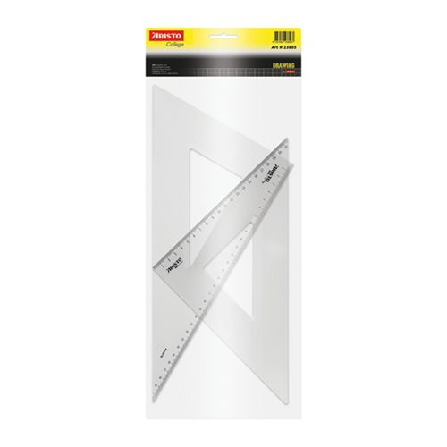 High-quality, 4-piece ruler set made of clear plastic. Set contents: 1 piece 30 cm straight, 1 piece 45 degree triangle 16 cm, 1 piece 60 degree triangle 23 cm, 1 piece 180 degree protractor 10 cm.