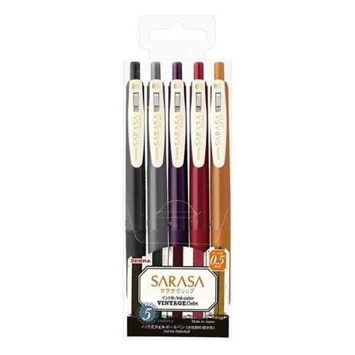 Gel pen set ZEBRA Sarasa Clip Vintage push button 0.5 mm 5 pieces metallic colors