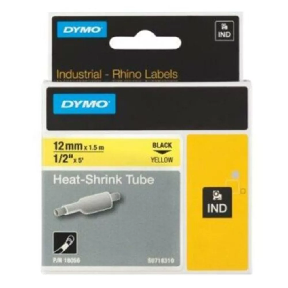 Shrink tube DYMO 12mm x 1.5m, black writing color on a yellow background