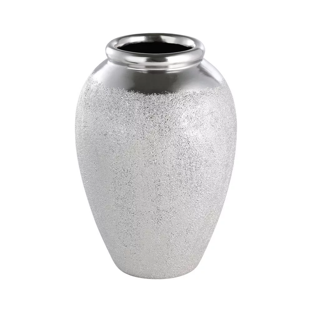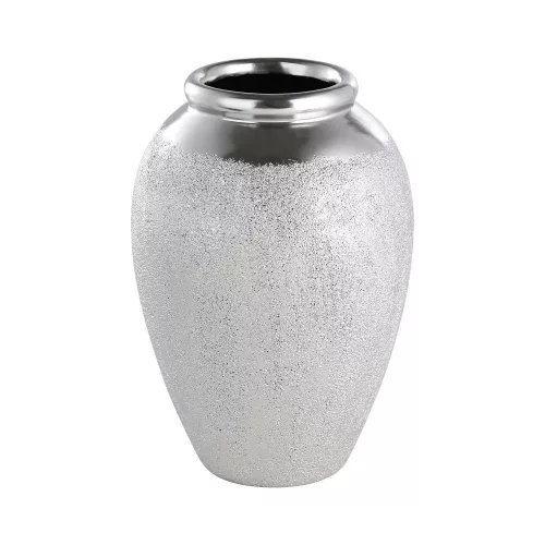 Introducing the Aramberri Silver Vase, elegantly designed with a height of 25 cm and a diameter of 16 cm. Crafted from high-quality ceramic, this classic vase adds a touch of sophistication to any space. It features a stunning silver finish, making it a perfect centerpiece for both modern and traditional settings. Weighing 1.31 kg and packaged for convenience, it's an ideal choice for decorative arrangements. Proudly made in China, this vase embodies timeless elegance. EAN: 9008606306220.