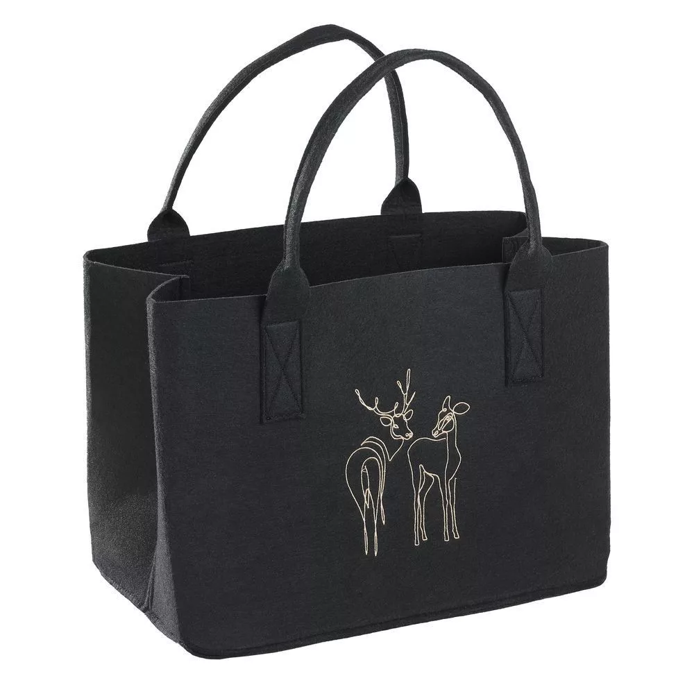 Introducing the Felt Bag Tomisato, a functional and stylish storage solution measuring 40x26x30cm. Crafted from durable materials, this bag features a charming deer design, making it a perfect addition to any home decor. Weighing only 0.28 kg, it's lightweight yet sturdy, with a gross weight of 0.32 kg. Ideal for organizing everyday items, this basic collection piece is imported from China and fits seamlessly into the EGLO LIVING 2023/2024 catalog. EAN: 9008606268207, Customs Tariff Number: 4202929890.