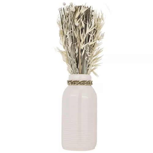Introducing our Dried Flower Bouquet with Vase from the Caraquet series. Standing at 28 cm, this elegant arrangement features natural colors that bring a touch of rustic charm to any space. Ideal for enhancing your interior decor, the bouquet is made from premium materials and comes in eco-friendly packaging. With a net price of 24.95 and a gross weight of 0.317 kg, this product is perfect for both personal use and gifting. Explore the beauty of dried flowers with this exquisite addition to our Basic Collection in the EGLO LIVING 2023/2024 catalog.