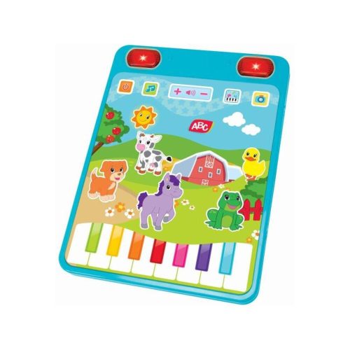 The ABC Mókás tablet is an interactive toy specially designed for babies, with which children can learn about different melodies and animal sounds while playing. The device plays 20 melodies and 15 different sounds. Children can even play the piano on the colorful keyboard at the bottom of the tablet. For the convenience of parents, the volume can be adjusted.; The tablet invites the little ones to play with its bright colors and cute graphics.; Packaging size: 22 x 27 x 5 cm