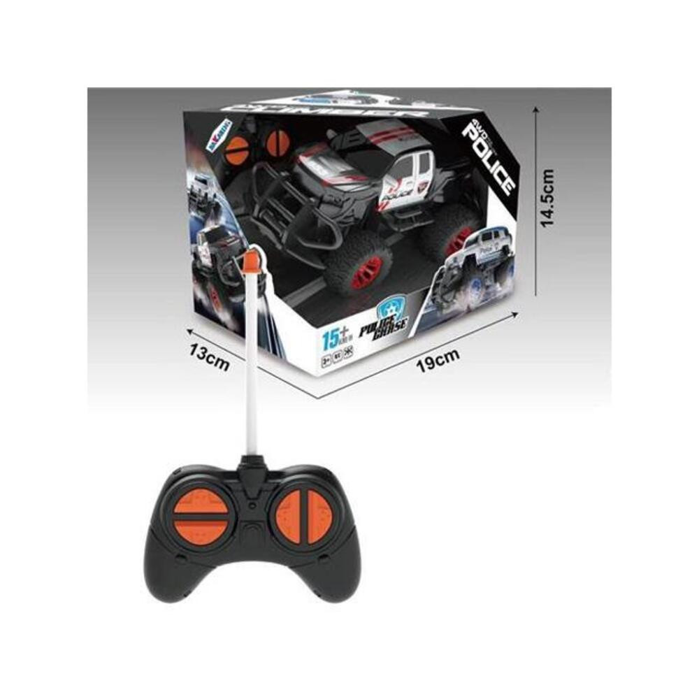 Children can play with a really cool-looking remote control car, which will be a huge favorite, if only because it can easily cope with the most difficult terrain conditions because it has really huge wheels. The high-rise body has been given a police paint job, which is accompanied by uniquely designed shock absorbers and, of course, gigantic wheels. The car can be controlled in all directions using a very convenient and extremely easy-to-use remote control.; The color and pattern of the car may differ from the one shown in the picture.; The price applies to a single product, which will be selected randomly.; Features:; - Police Off-Road remote control pickup; - In various colors; - With huge wheels; - With a convenient remote control; - Size: 9.5 x 15.2 cm