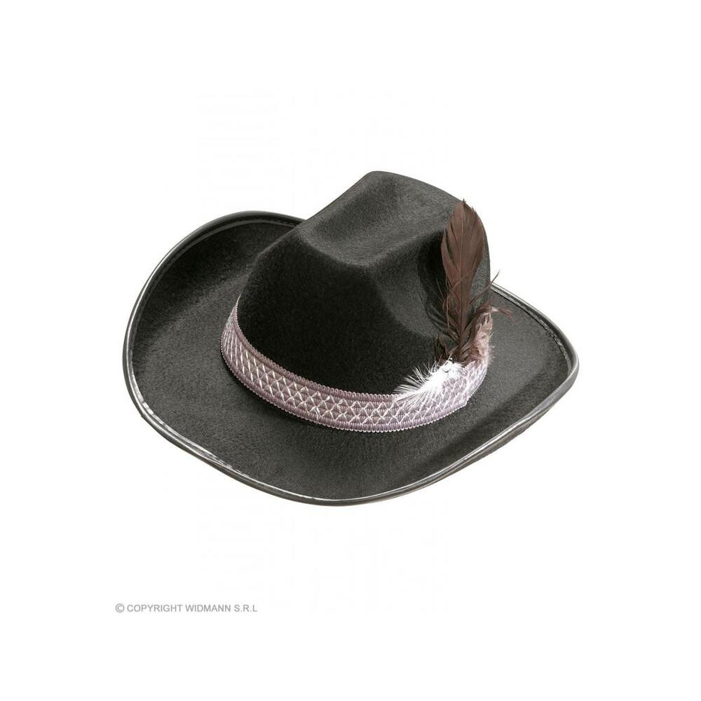 Black cowboy hat, made of felt, with feather decoration on the side, can be worn as a costume accessory or on its own. The costume accessory is universal in size, so it can be used with any child's costume. Other accessories and clothes are not included!