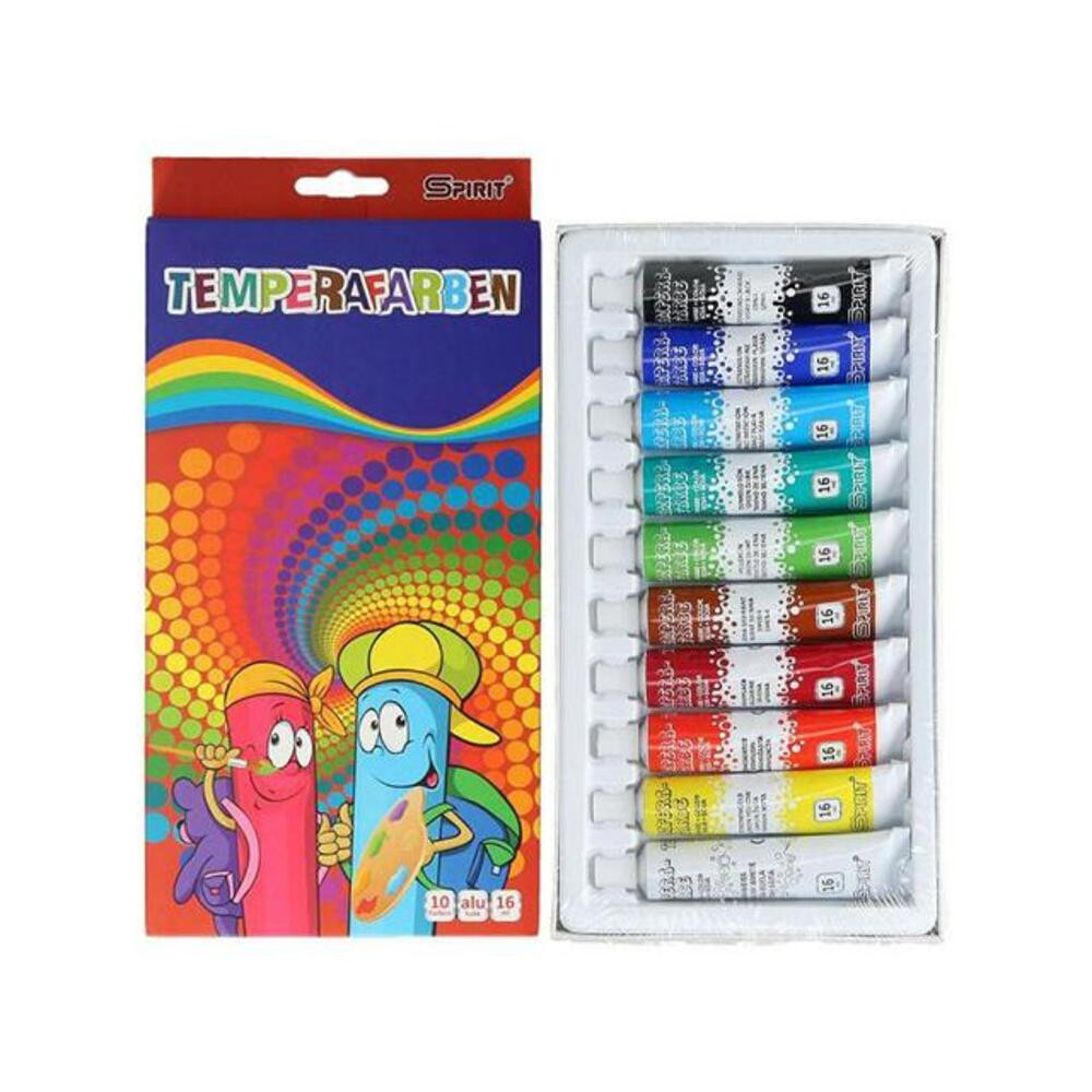 Get this set of 10 different colored tempera paints for your child's creative tool collection, which will help them start creating right away and can be of great use during school drawing classes. The set contains 100% non-toxic tempera paints that have bright colors and can be easily washed out of clothes. Each tube contains 16ml of tempera paint.; Features:; - Colorful tube tempera set; - 10 different colored tempera paints; - Capacity: 16ml/tube; - Free of harmful substances; - Washable