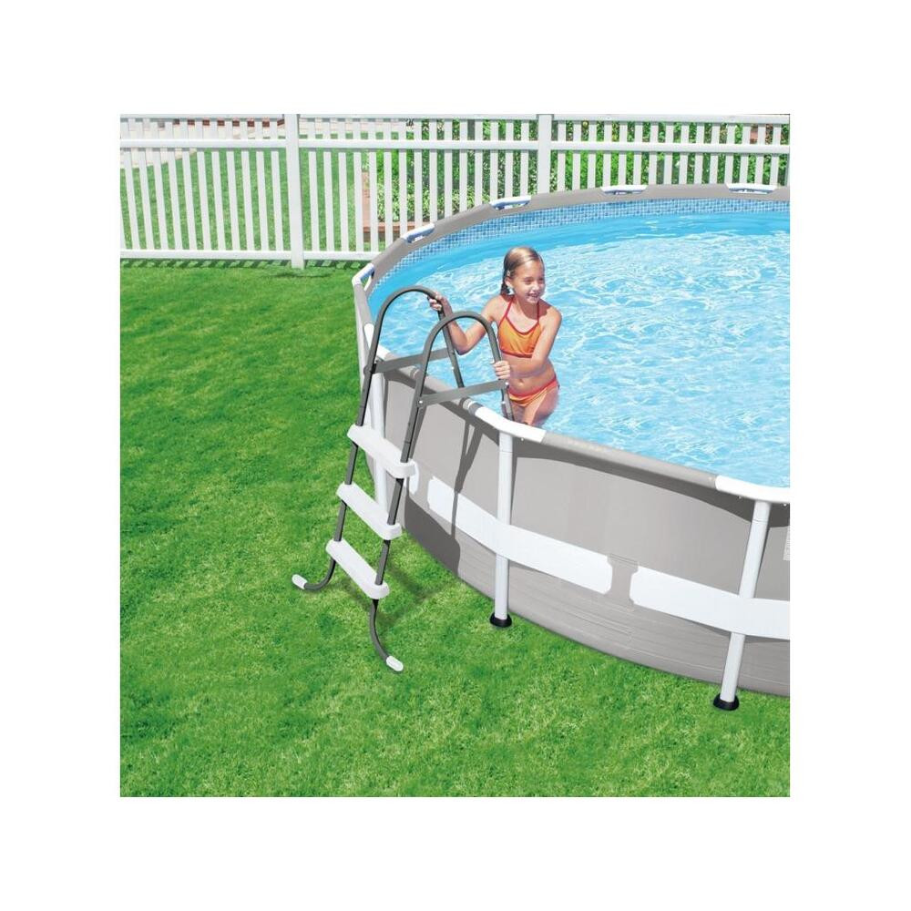 Entrance ladder for pools up to 91 cm high; For pools up to 91 cm high; Load capacity up to 136 kg; Steps with anti-slip surface; Protective caps to prevent damage to the pool cover