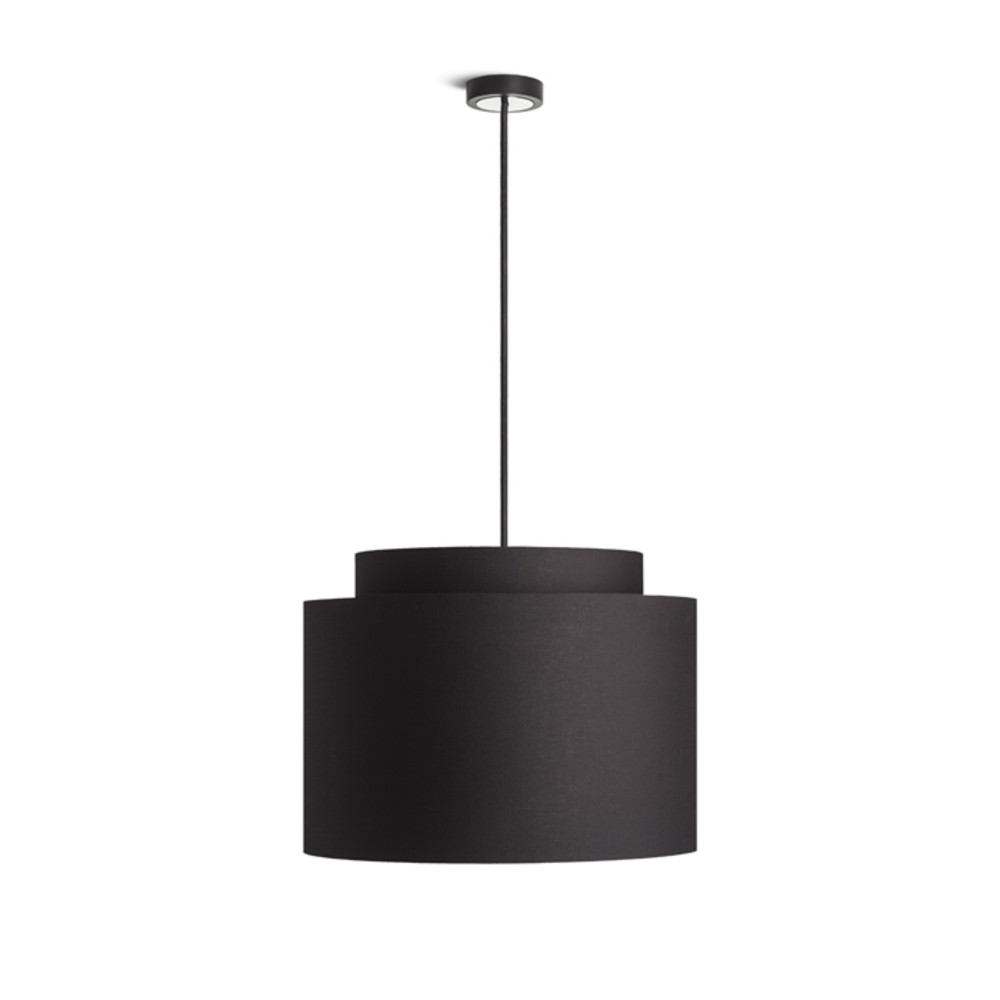 Textile lampshade for E27 socket. Suitable for ceiling base or suspension kit installation. PMMA diffuser available for the lampshade (G11867, G12299). Recommended accessories: HEX, ELISA, ENZO, KOMBIX, LISA, SOLO.