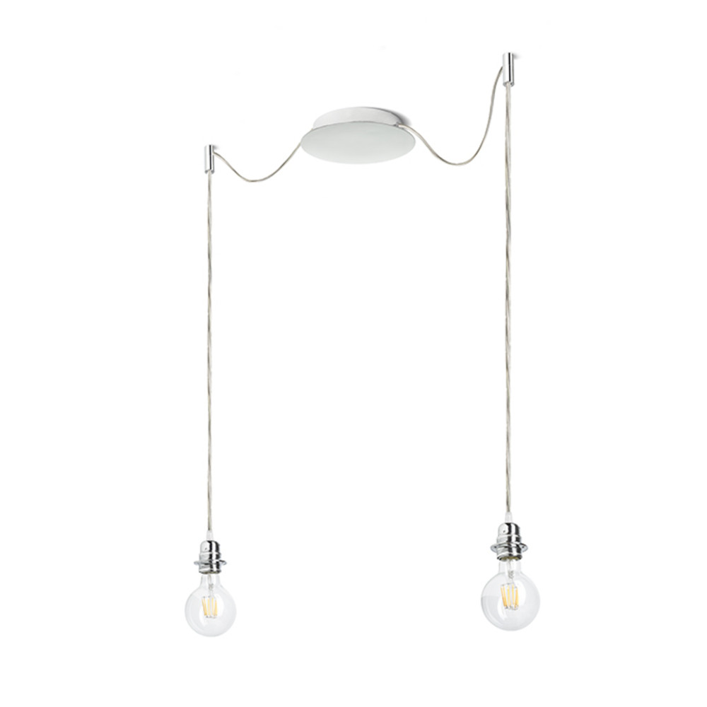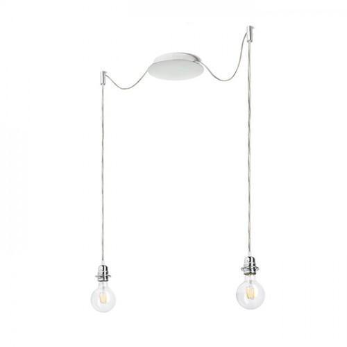 Pendant lamp with central ceiling base and separate textile arms with E27 metal socket. The hinges are equipped with chrome ceiling brackets, which can be placed at a separately selected distance from the base. The total length of the cable is 3 m. Suitable lampshades: ARISTA, DELI, JAKARANDA, DOUBLE 40/30, DOUBLE 55/30, ASPRO 40/30, ASPRO 55/30, RON 15/20, RON 40/25, RON 55/30, TEMPO 15/30, TEMPO 30/19.