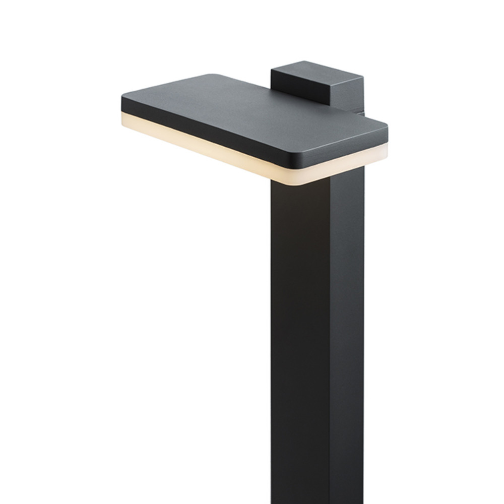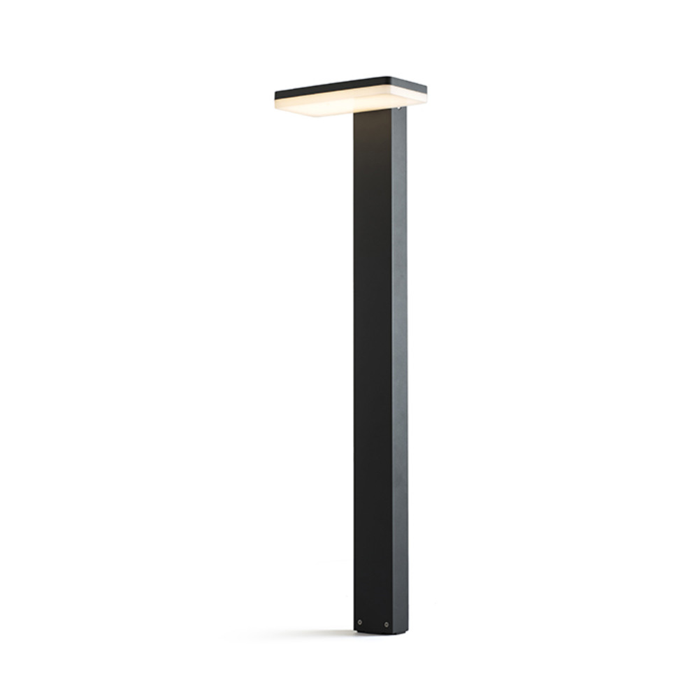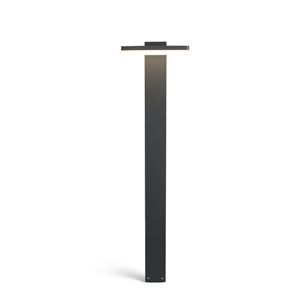 Outdoor LED floor lamp with downward lighting, made of die-cast aluminum, with opal lower lampshade.