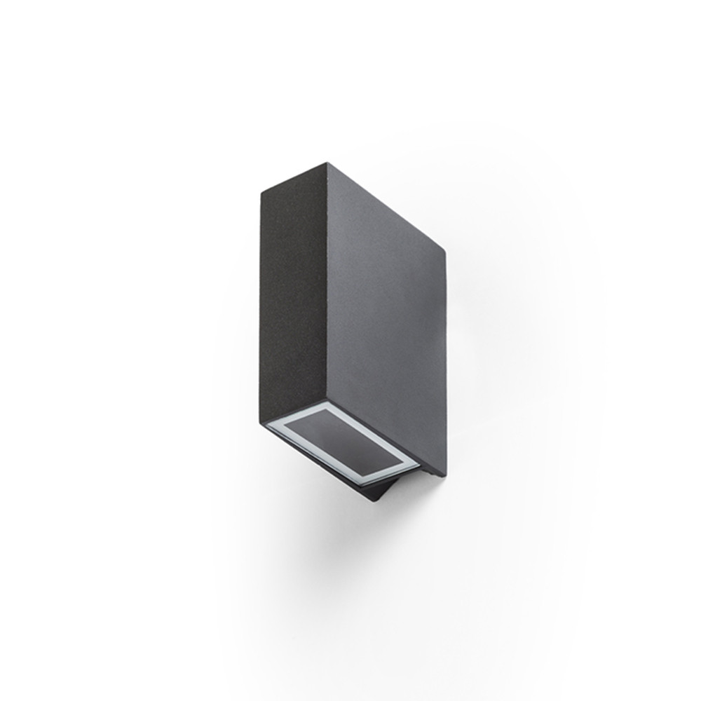 Wall-mounted, outdoor LED square lamp with UP/DOWN lighting.