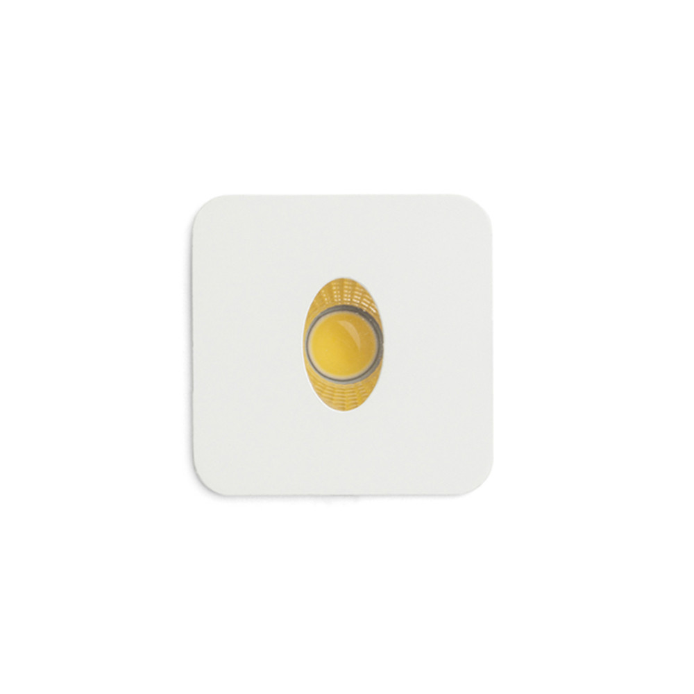 Recessed, orientation, square LED light for installation in hollow walls or niches.