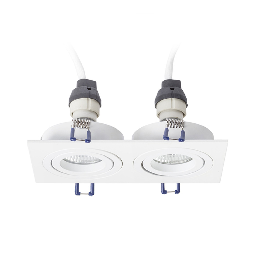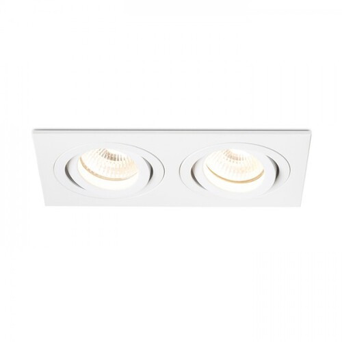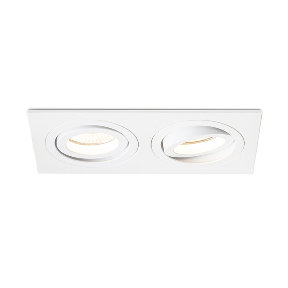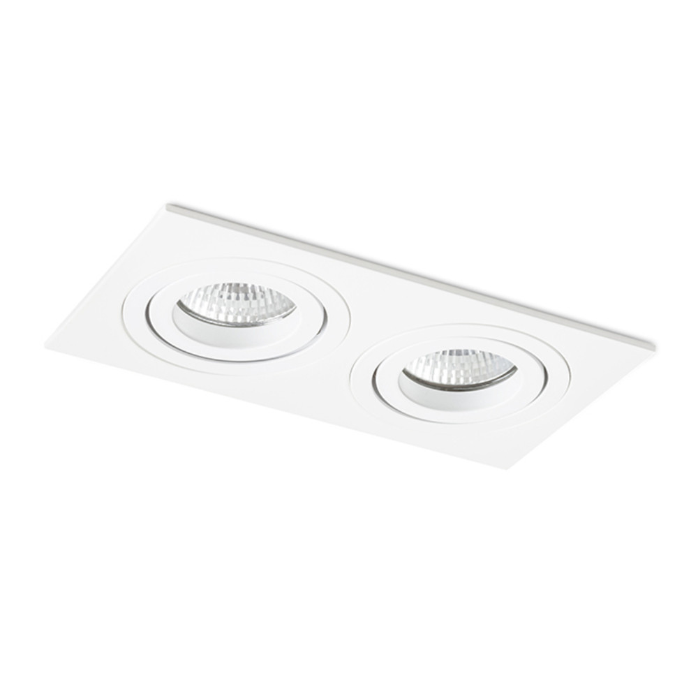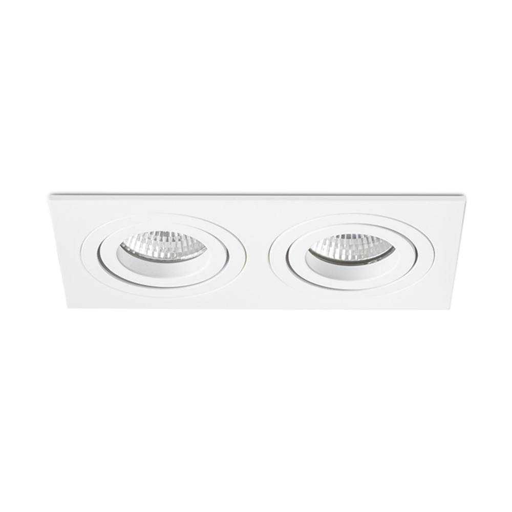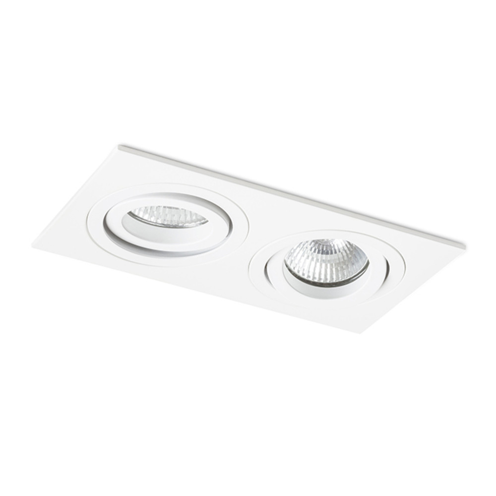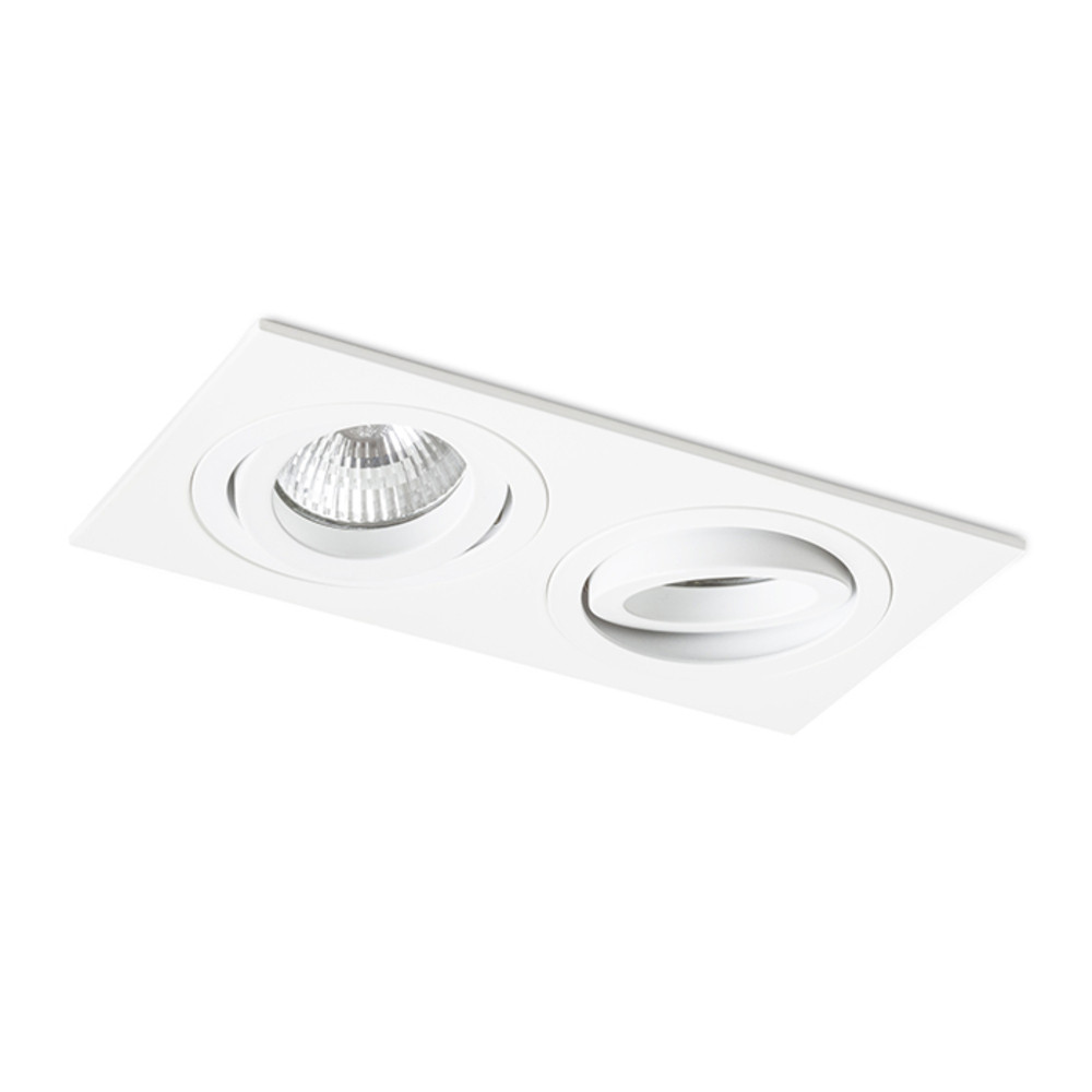 Rectangular, double recessed light in aluminum design, available in natural or painted finish. For GU10 socket bulbs, tiltable design.