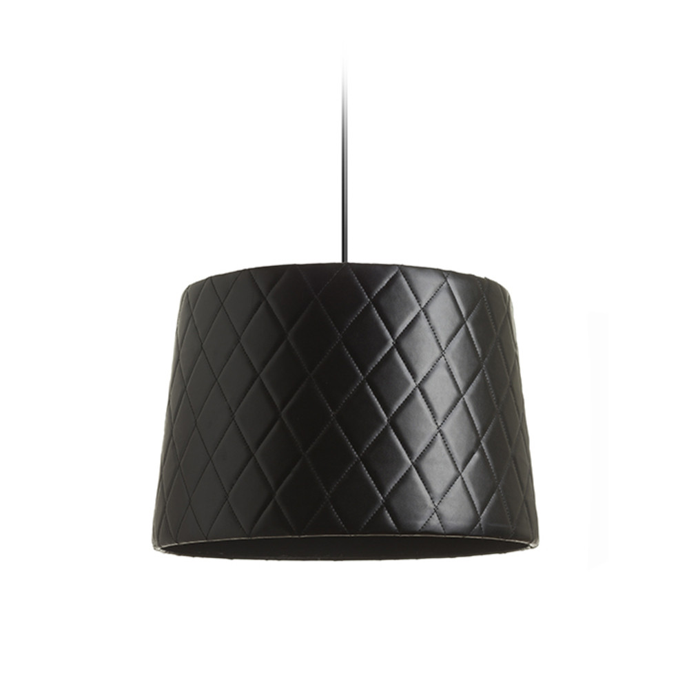 Massive, quilted lampshade in black leather-effect finish.