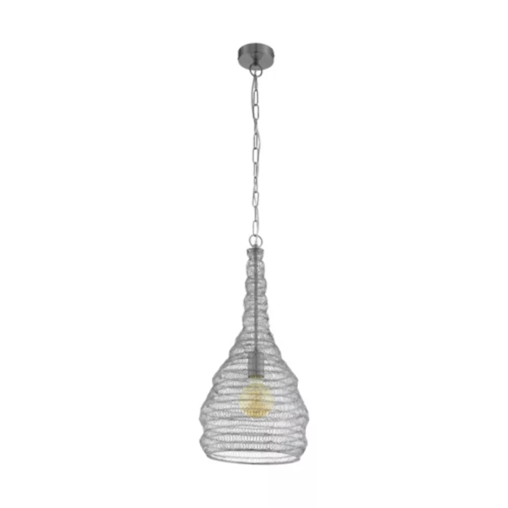 The COLTEN series elegant pendant lamp is made of silver steel and comes with protective insulation. The lamp requires an E27 light source, which is not included with the product. The COLTEN series lights combine woven steel and unique design, creating a play of appearance and light that adds a magical charm to your home. The lamp has a maximum power of 1x60W, and the product dimensions are 1100 mm (height) and 330 mm (diameter). It has an IP20 protection rating and belongs to protection class 2, making it ideal for indoor use. Its energy efficiency class is excellent, providing not only style but also savings.
