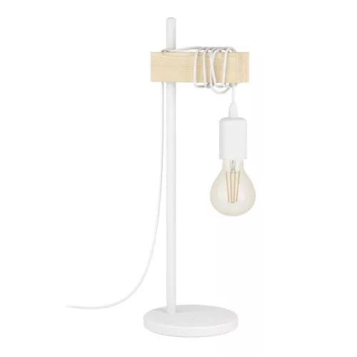 The TOWNSHEND table lamp, with its stylish and modern appearance, becomes a gem in any interior. The combination of white metal and wood, particularly the metal base and brown wood shade, aligns with Scandinavian and vintage design trends. This lamp is an ideal choice for a bedside table, living room, dining area, or even a hallway. The product operates via a convenient cord switch and features an E27 socket, requiring an E27 light source, which is not included. The lamp has a maximum power of 1X10W, providing energy-efficient lighting while creating a vintage atmosphere in your home. The simple yet unique design of the TOWNSHEND series exudes a pleasant vintage feel, crafted with wood and steel elements.
