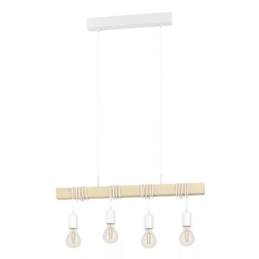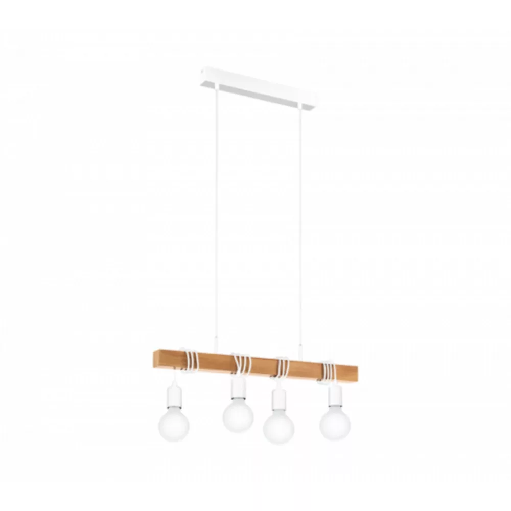 The TOWNSHEND hanging lamp consists of a unique wooden beam and four white lamp holders. The lamp holders hang at different heights and can be adjusted by winding or unwinding the cables. The eye-catching combination of pine wood and metal perfectly fits modern interiors, such as Scandinavian and vintage styles. The design provides unique lighting for any room, whether it's the living room or above a long dining table. The milk-white bulbs shown in the picture are not included with the product. The product comes with E27 lamp holders and requires E27 light sources. The TOWNSHEND series impresses with its simple, unusual design; the combination of solid wood and steel creates a trendy effect and adds a pleasant vintage charm to your home.