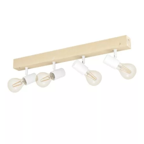 The TOWNSHEND 3 spot lamp is an ideal choice for both modern and vintage style interiors. The lamp features a wooden frame with four adjustable white metal accents. The design, evoking a northern rug or rustic style, offers an attractive appearance through the combination of pine and metal. The lamp fits perfectly into any room, whether it's a kitchen, living room, bedroom, hallway, or dining room.