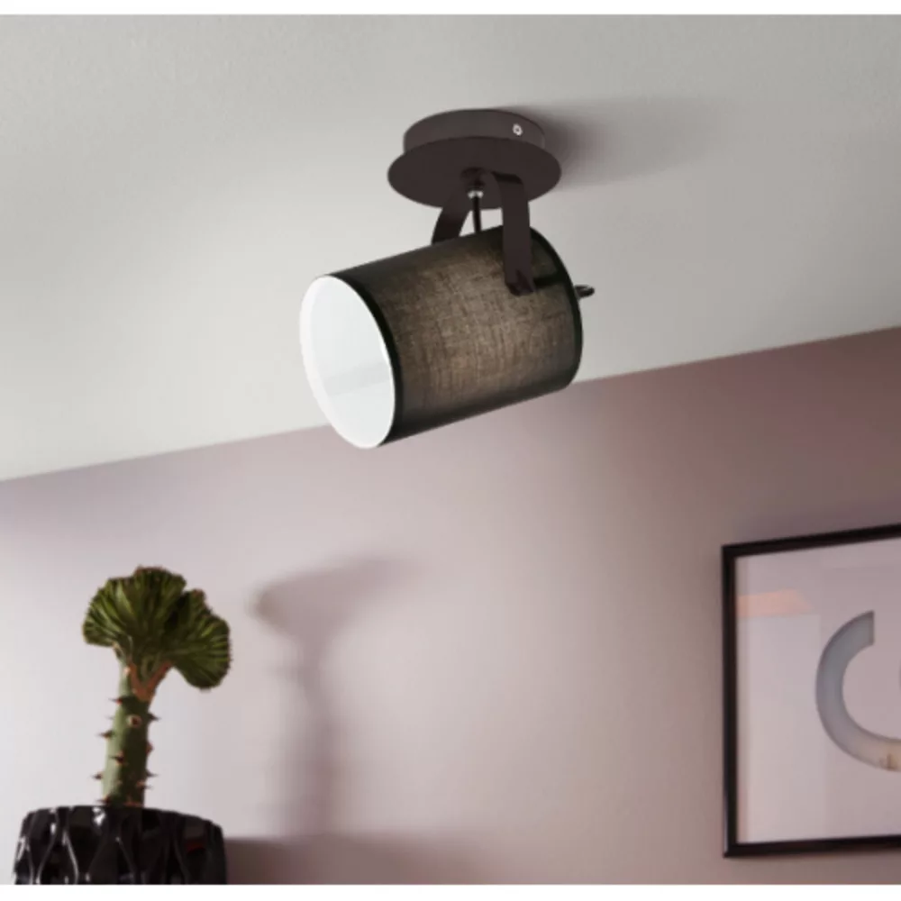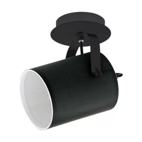 The VILLABATE wall or ceiling spotlight is made of black metal, featuring an adjustable black textile light source and a white inner surface. Its minimal wall-mounted design perfectly fits modern styles and can also be used as ceiling lighting. The adjustable head allows you to direct the light to highlight certain areas of the room, whether it's the kitchen, living room, bedroom, hallway, or dining room. The light source is not included with the product. The product has an E27 socket and requires the use of an E27 bulb.