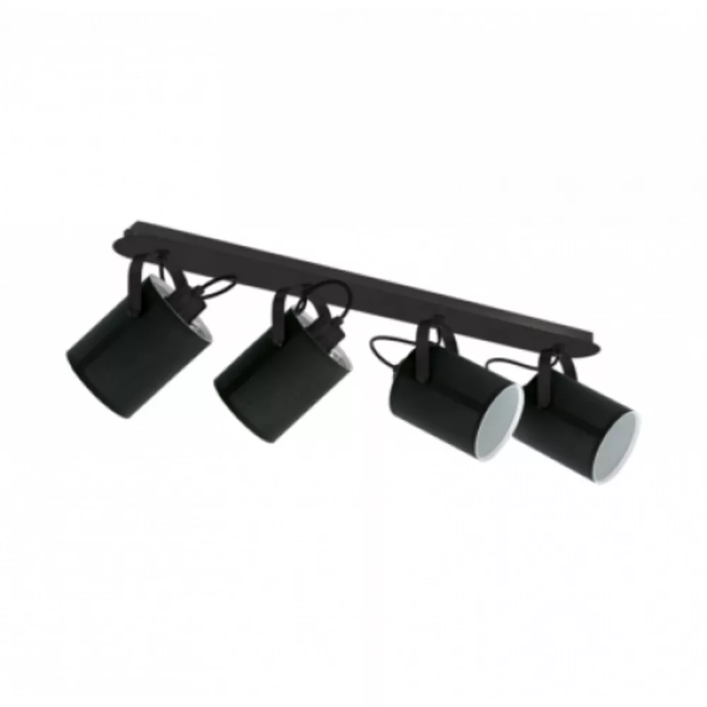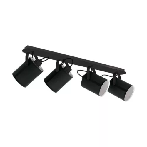 The VILLABATE spot lamp is made of black metal with four adjustable black spotlights and a white interior surface. Its design fits modern interior styles. With its rotatable heads, this minimalist ceiling lighting works well in any space, whether it's a kitchen, living room, bedroom, hallway, or dining room. The light sources are not included with the product; E27 socket bulbs are required. The product has an IP20 rating and requires a maximum of 4x10W power sources. A 2-year warranty ensures reliability.