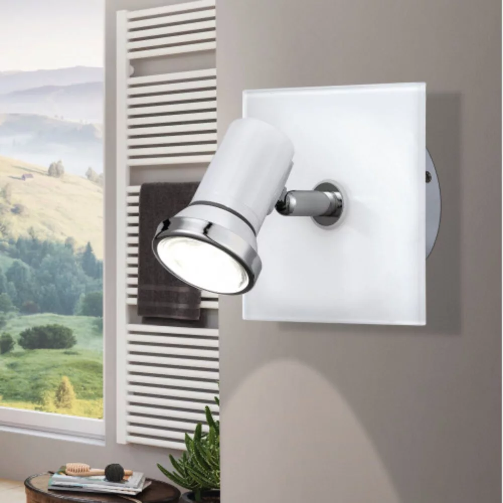 The TAMARA 1 LED wall and ceiling spotlight is an ideal choice for bathrooms with its elegant design and versatility. Its black metal coating and square glass ceiling mount give it a modern look, while chrome details emphasize premium quality. Thanks to its IP44 rating, the lamp is resistant to splashing water, making it safe for use in bathroom environments. The included GU10 LED light source provides warm white light, creating a pleasant atmosphere. The spotlight can be widely used in modern interiors, offering stylish lighting for bathrooms.