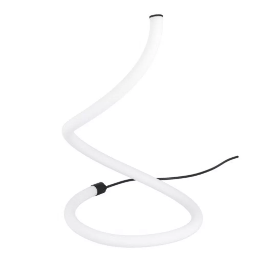 The BANDERILLAS LED table lamp features a modern, minimalist design and is made of white plastic with a curved LED profile. The integrated LEDs emit a pleasant warm light, providing 360° illumination in the room. The lamp can be easily turned on and off using the cord switch. Its playful shape allows it to seamlessly fit into any interior, whether on a nightstand, in the living room, dining room, or hallway.