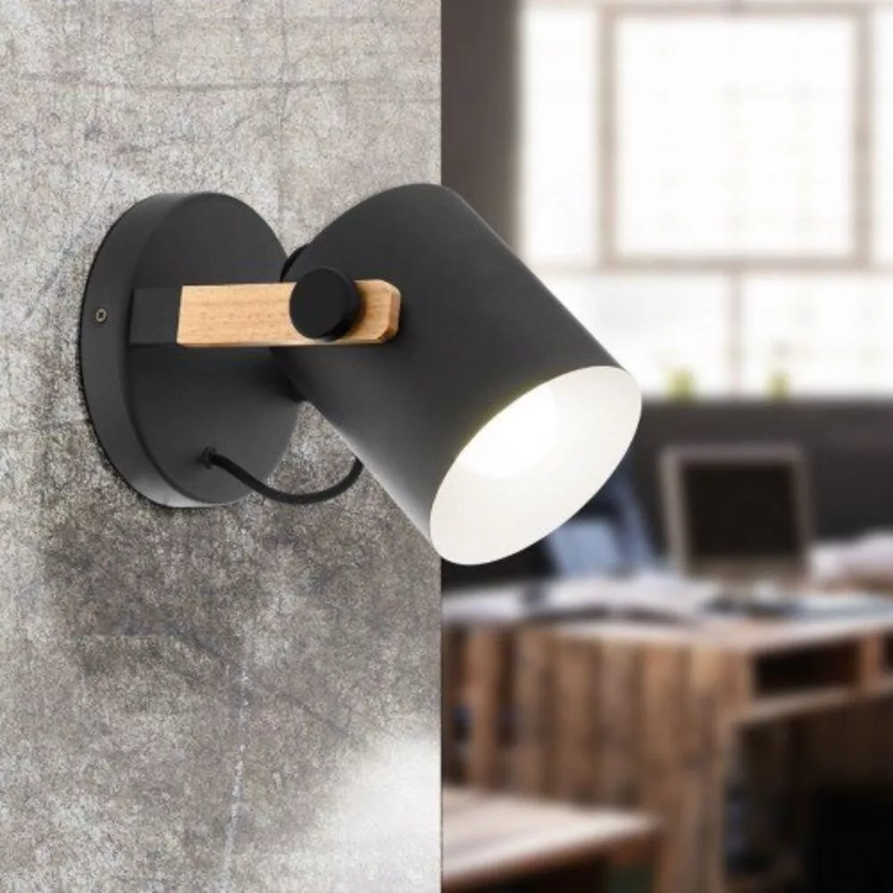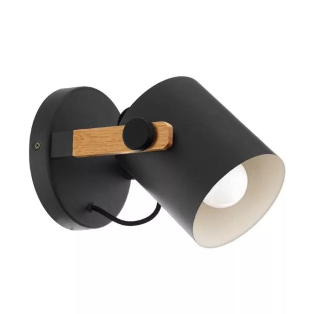 The HORNWOOD wall and ceiling lamp features a natural pine wood frame and an adjustable black metal mount, with a cream-colored interior. The black metal mount of the wall-mounted spotlight perfectly complements the harmonious combination of wood and metal. The product seamlessly fits into modern interior design styles and can also be used as a ceiling lamp. The adjustable head allows you to direct the light to highlight specific areas, whether in the living room, bedroom, hallway, or dining room. The product requires an E27 light source, which is not included. The HORNWOOD series enchants your home with its industrial style and clean yet modern design. The lamps are available in various types, and the adjustable lamp heads allow for individual adjustment of the light direction.