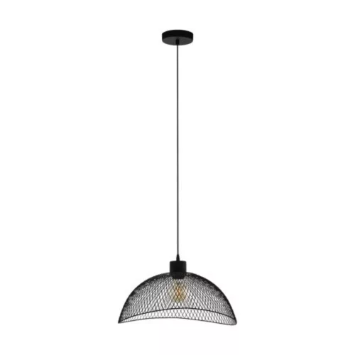 The POMPEYA pendant lamp is made of black expanded metal mesh with attractive curved edges. The lampshade's grid pattern creates a stunning play of light and shadow when the light is turned on. This pendant easily fits into modern and Scandinavian interior design styles, creating the right atmosphere in any space, whether it's above the living room or dining area. The filament light source shown in the picture is not included. The product has an E27 socket and requires an E27 light source.
